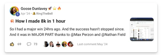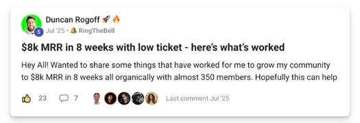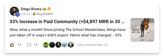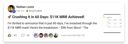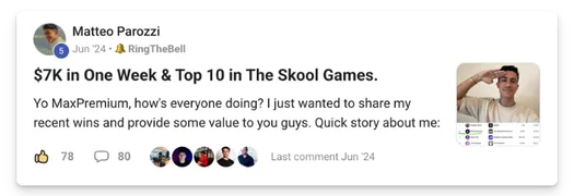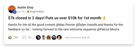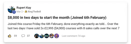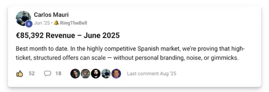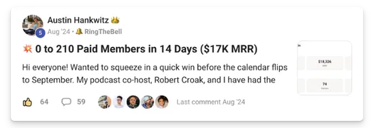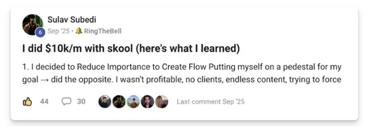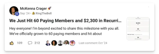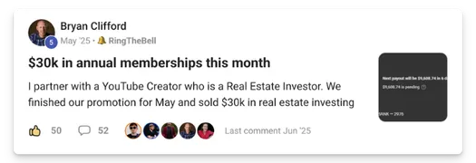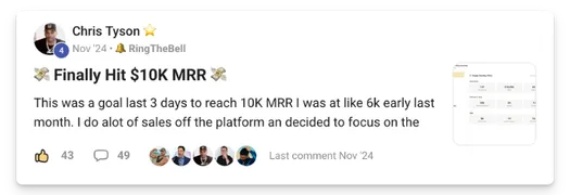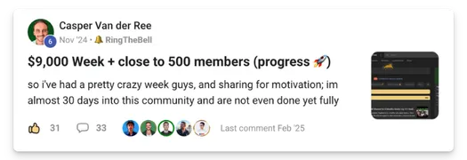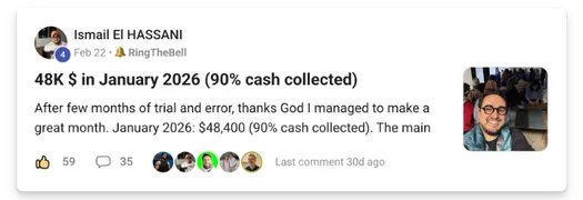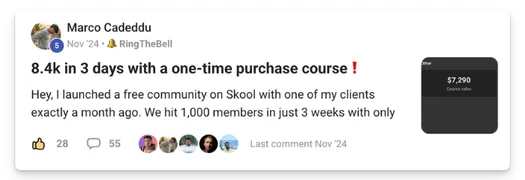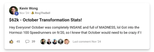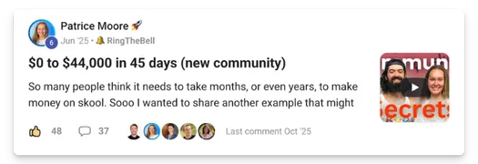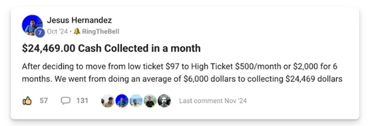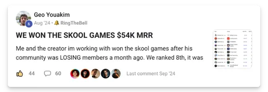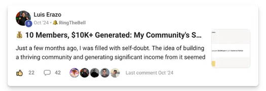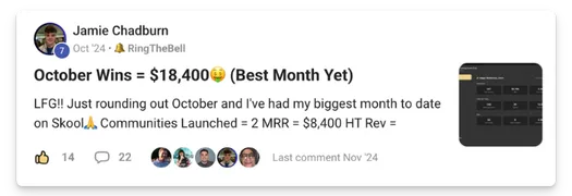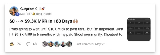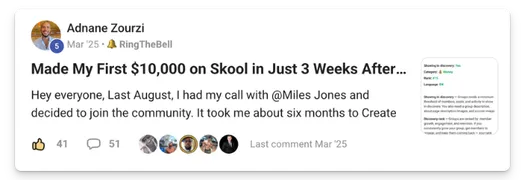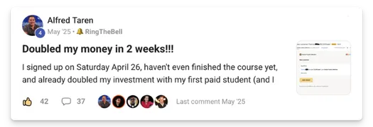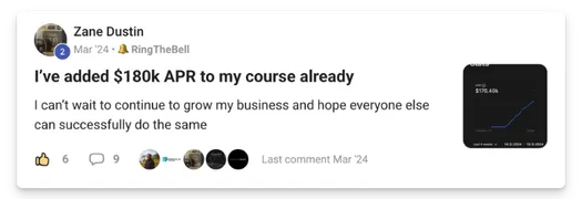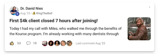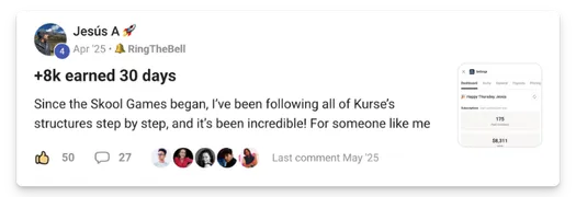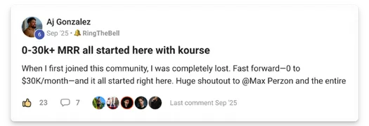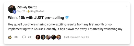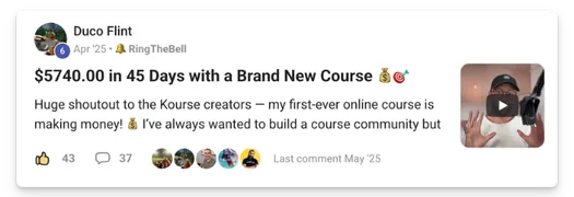 “We were doing decent before Kourse. After applying their playbook, we hit $63K/month across 3 communities. It helped us build real, lasting growth.”