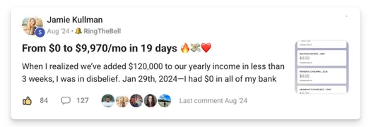 “I set a $24K goal in 30 days—and hit it. The strategies, support, and relationships inside Kourse made what felt impossible totally doable.”