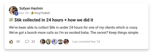 “I launched with just a Loom video, no sales calls, no DMs and by the end of Easter weekend, we’d collected over $33K. Completely changed everything."